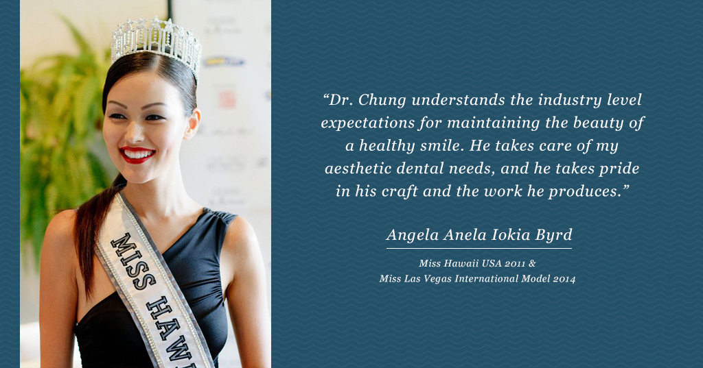 "Dr. Chung understands the industry level expectations for maintaining the beauty of a healthy smile. He takes care of my aesthetic dental needs, and he takes pride in his craft and the work he produces."